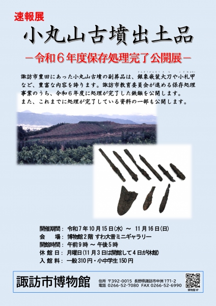 場所:諏訪市博物館 開催期間:2025-10-15〜2025-11-16 お問い合わせ:電話:0266-52-7080 メール:suwamu@city.suwa.lg.jp